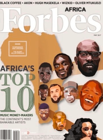 The list from Forbes 2017 Top 10 richest Musicians in Africa has been put together using factors such as endorsement, popularity, show rates, sales, awards, YouTube views, appearance on newspapers, investment, social media presence, influence and other sensitive factors.