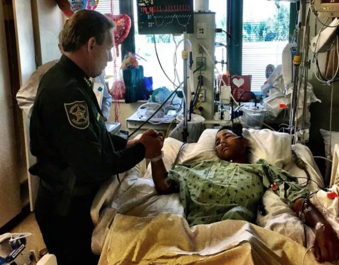“Fortunately, he is recovering — but has a long road ahead with more surgeries needed,” it posted on Facebook Sunday, adding that Sheriff Scott Israel was “honored” to visit him.