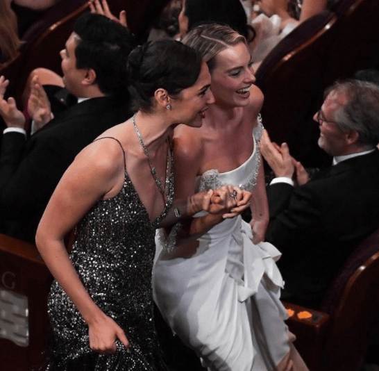 Australian actress/film producer, Margot Robbie and Israeli actress/model Gal Gadot both pictured at the 2018 Oscar Awards.