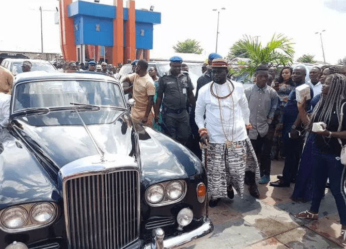 Yesterday, Billionaire and Prime Minister of Warri Kingdom, Chief Ayiri Emami made quite a classic entry with his expensive classic 1965 Bentley car at a wedding event held at KFC event center in Warri, Delta state.